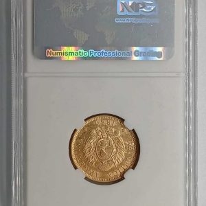 Argentina – 1889 – 5 Pesos – km#31 – Oro 0.900, 8.06g, ø 22.12mm – Certificado NPG – Keydate – La fecha más escasa