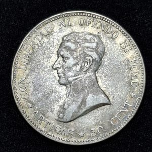 Uruguay – 1916 – 50 Centésimos – Plata 0.900, 12.5g, ø 30mm KM# 22 – CG##39