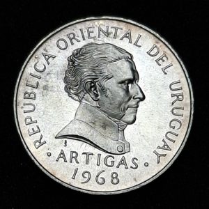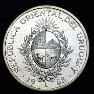 Uruguay – 1968 – 5 Pesos – ENSAYO – Plata, 4.5g, ø 20mm KM# Pn81 – CG## E18