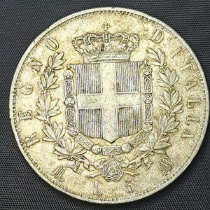 Italia – 1873 – 5 Liras – km#8 – Rey Vittorio Emanuele – plata – VF
