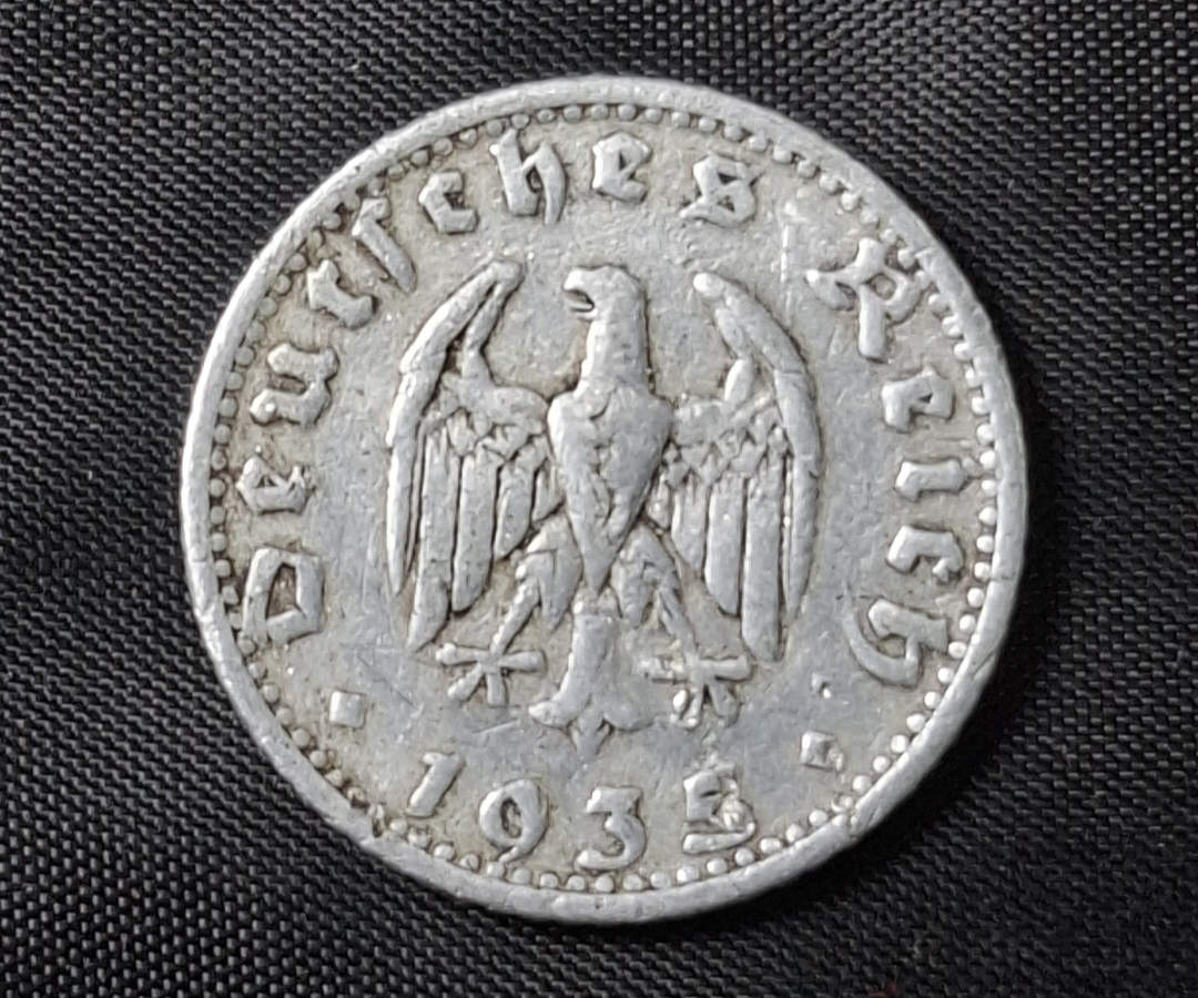 / Alemania – 1935 D – 50 Pfennig – Tercer Reich – Época Nazi – Aluminio – VF