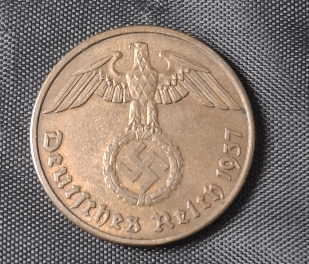 Alemania – 1937 F – 2 Pfennig – Tercer Reich – Época Nazi – Cobre – VF