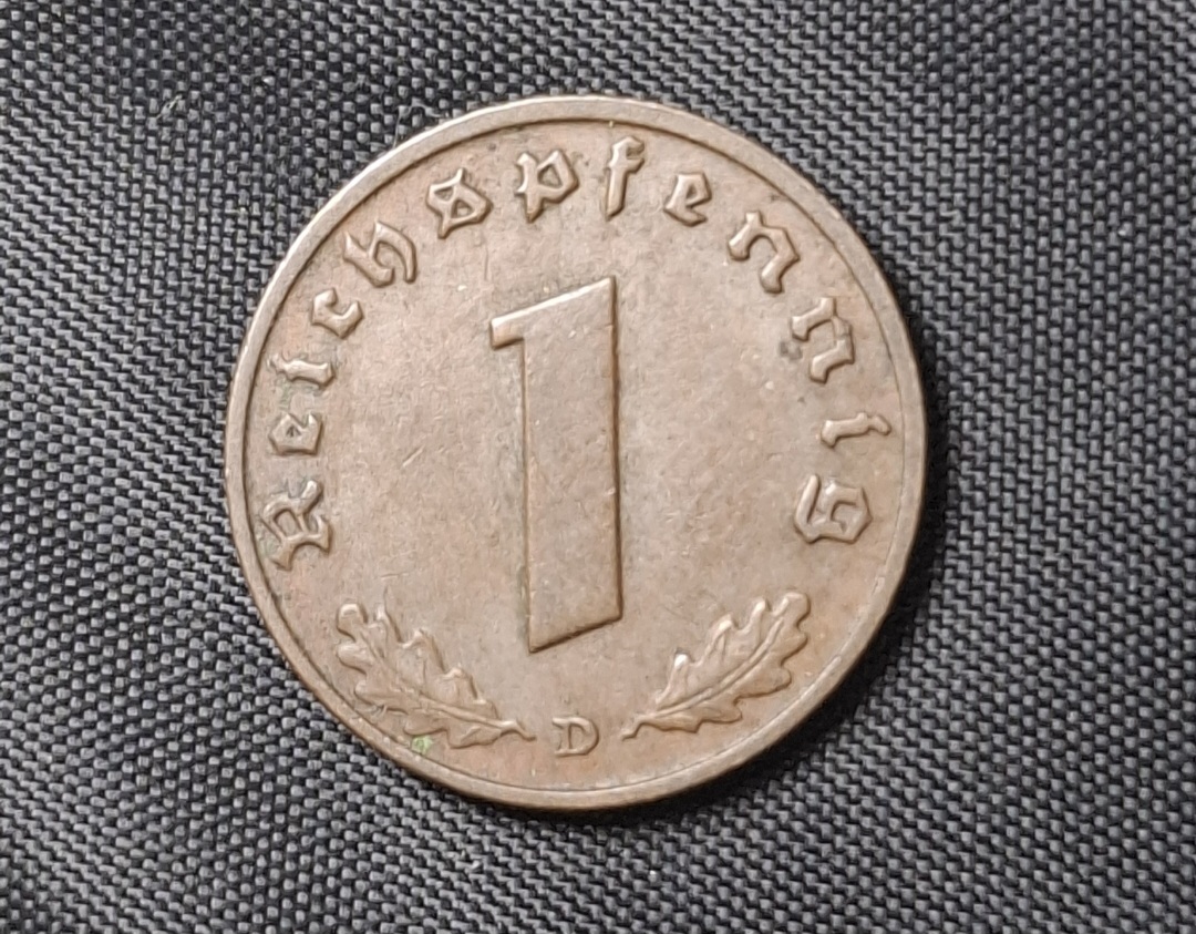 Alemania – 1937 D – 1 Pfennig – Tercer Reich – Época Nazi – Cobre – VF