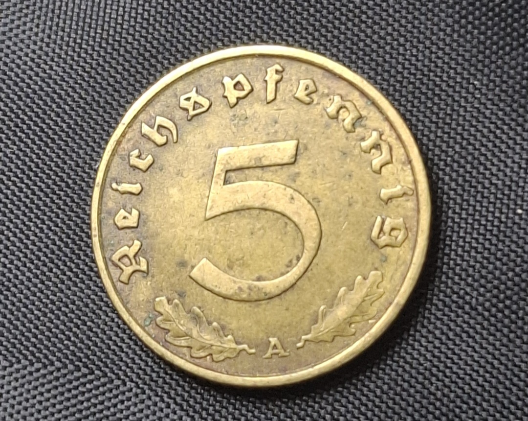 Alemania – 1938 D – 5 Pfennig – Tercer Reich – Época Nazi – Cobre – VF