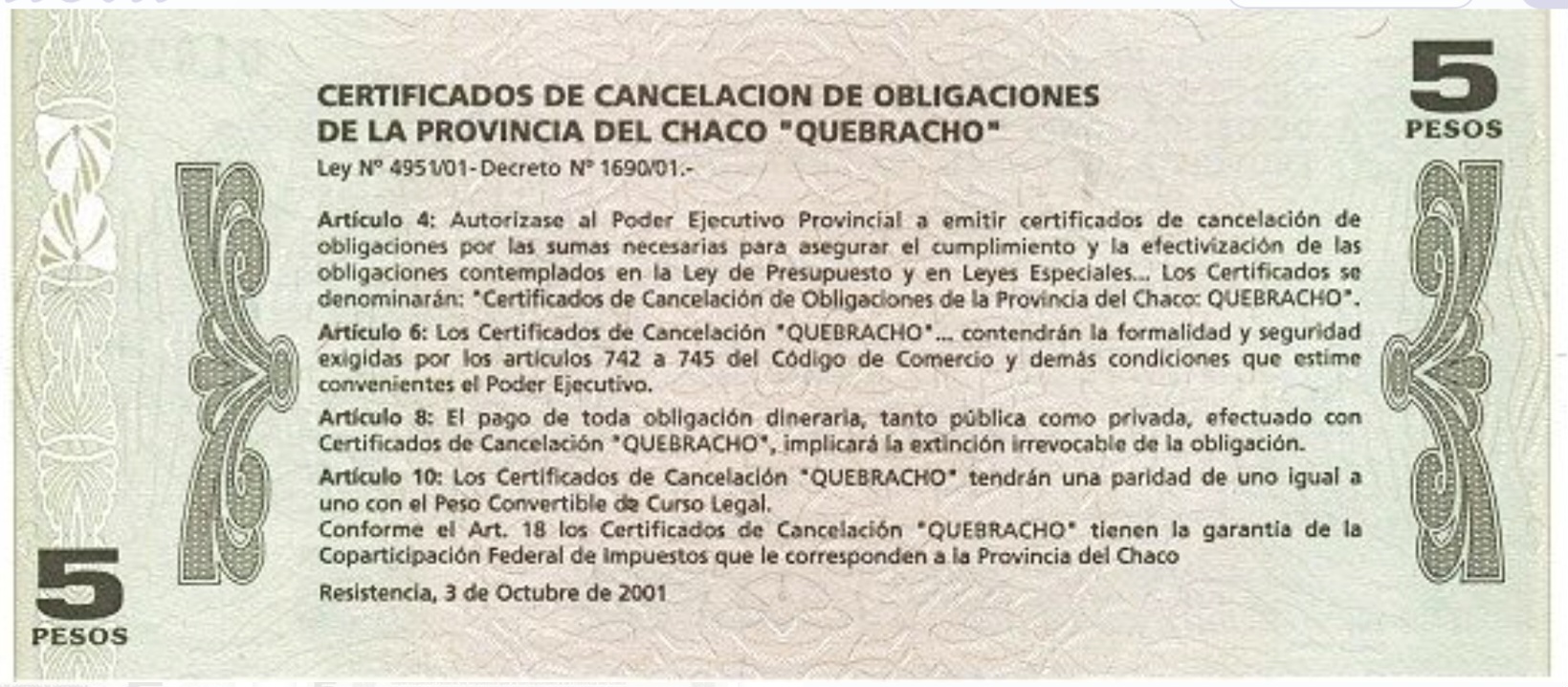 Argentina – 2001 – 5 Pesos – Dinero de EMERGENCIA – Chaco – Unc