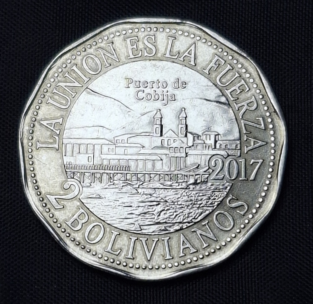 Bolivia – 2017 – 2 Bolivianos – Puerto de Cobija – Acero – Unc cantidad