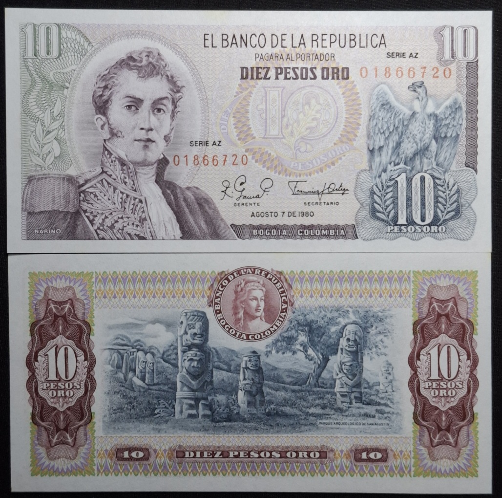 / Colombia – 1980 – 10 Pesos – Unc