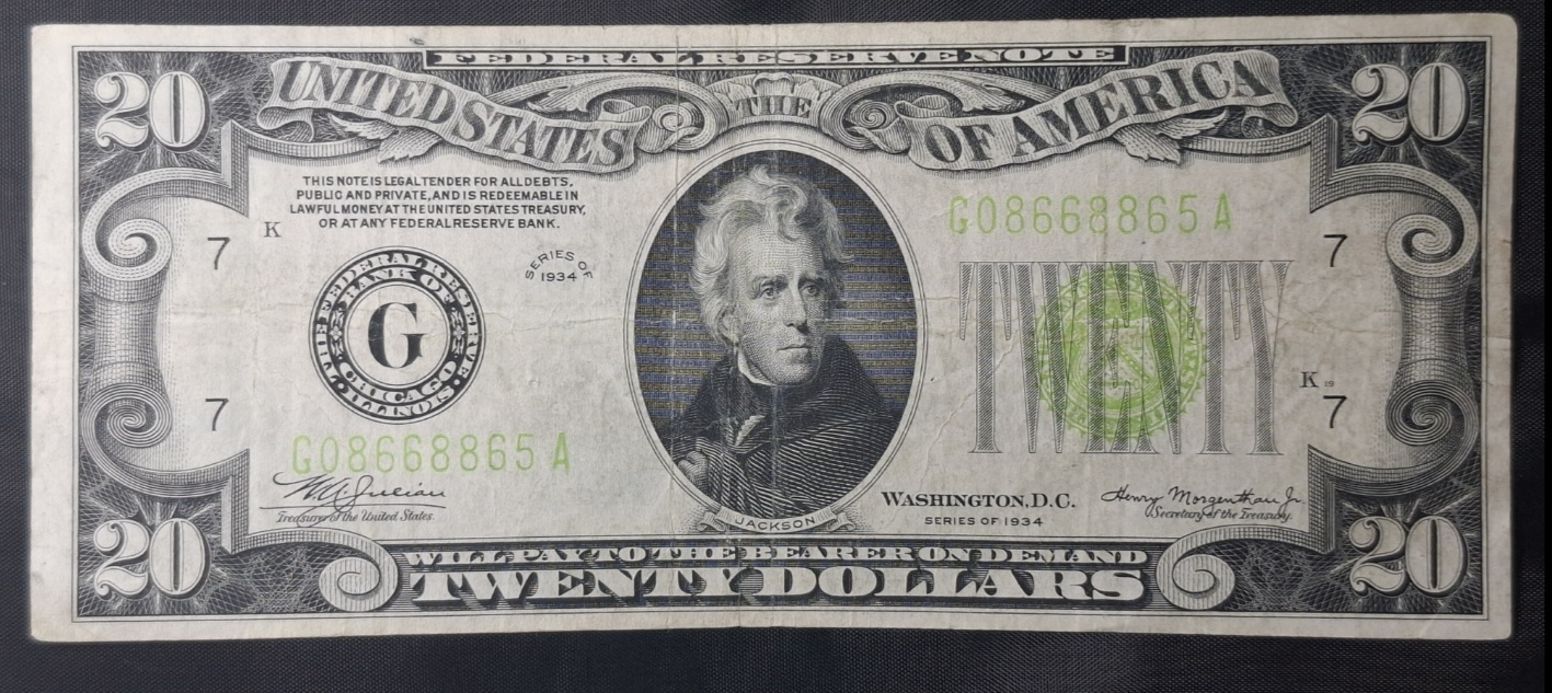 EE.UU.AA. – 1934 – Reserva Federal Chicago – 20 Dólares – VF