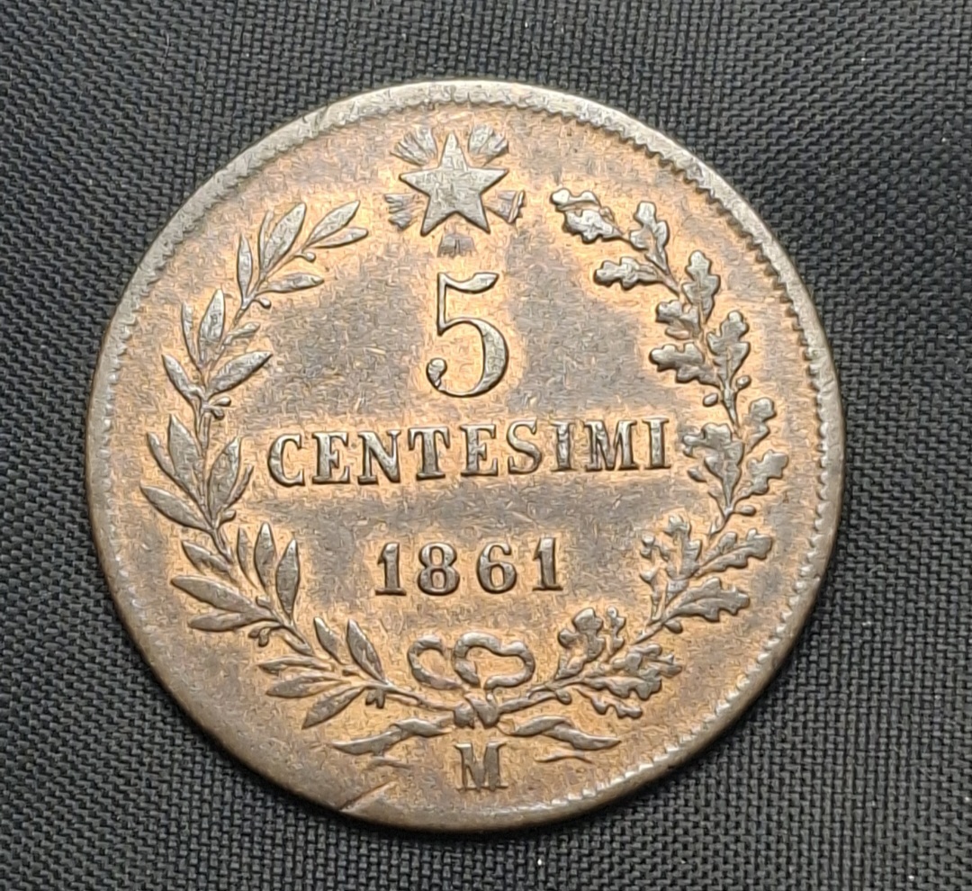Italia – 1861 – M – 5 Centésimi – Bronce – VF
