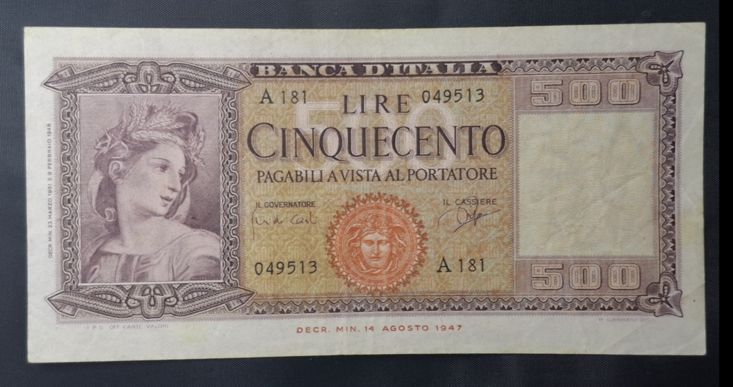 / Italia – 1947 – 500 Liras – VF+