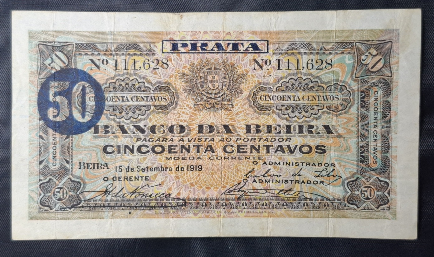 / Mozambique – 1919 – 50 Centavos – Banco da Beira – VF