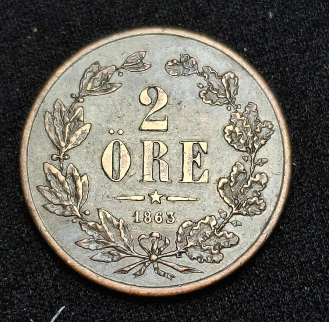 Suecia – 1863 – 2 Ore – Km# 706 – Cobre – VF
