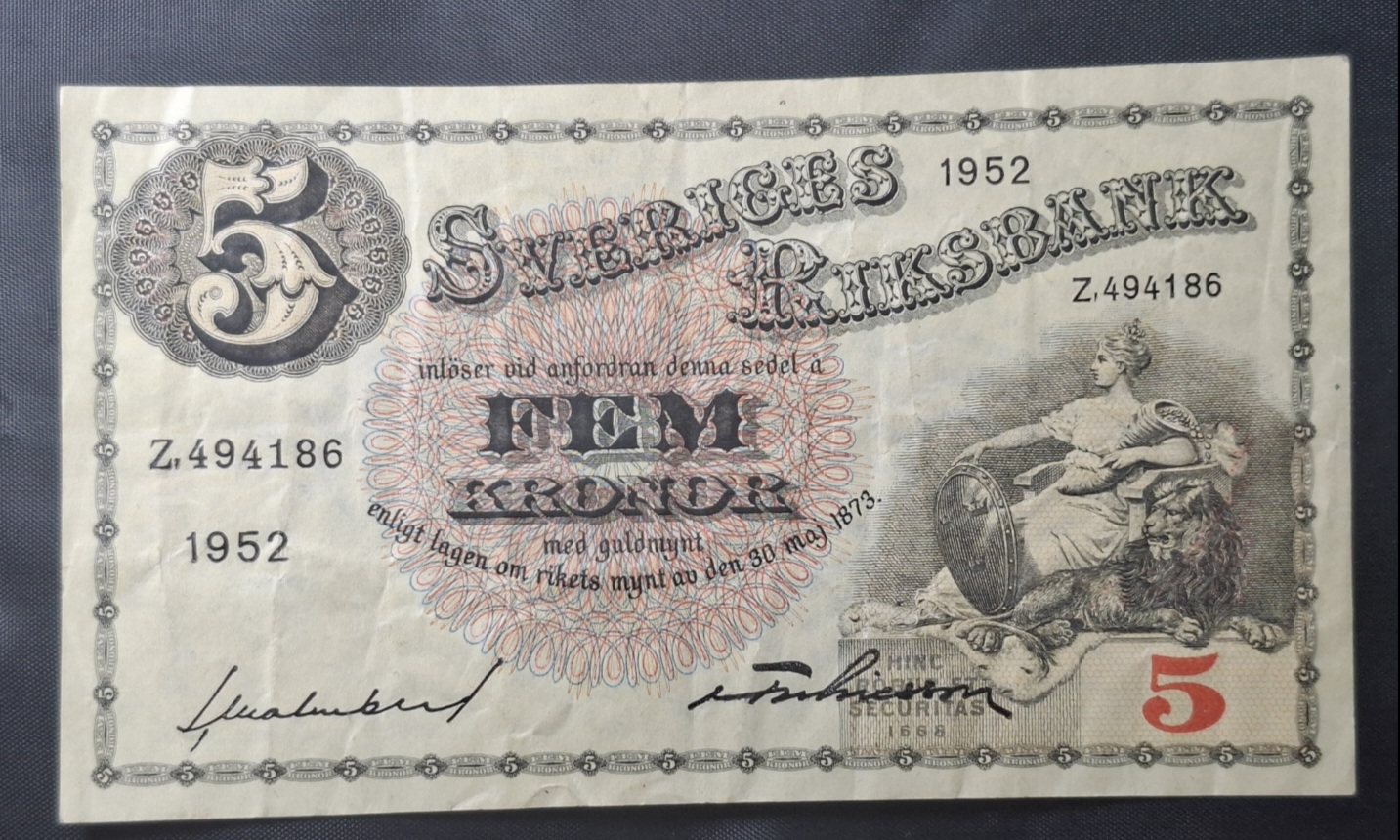 Suecia – 1952 – 5 Coronas – XF