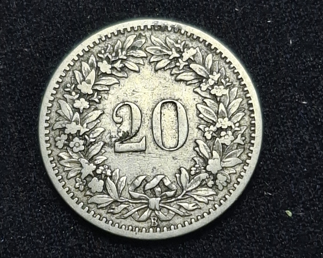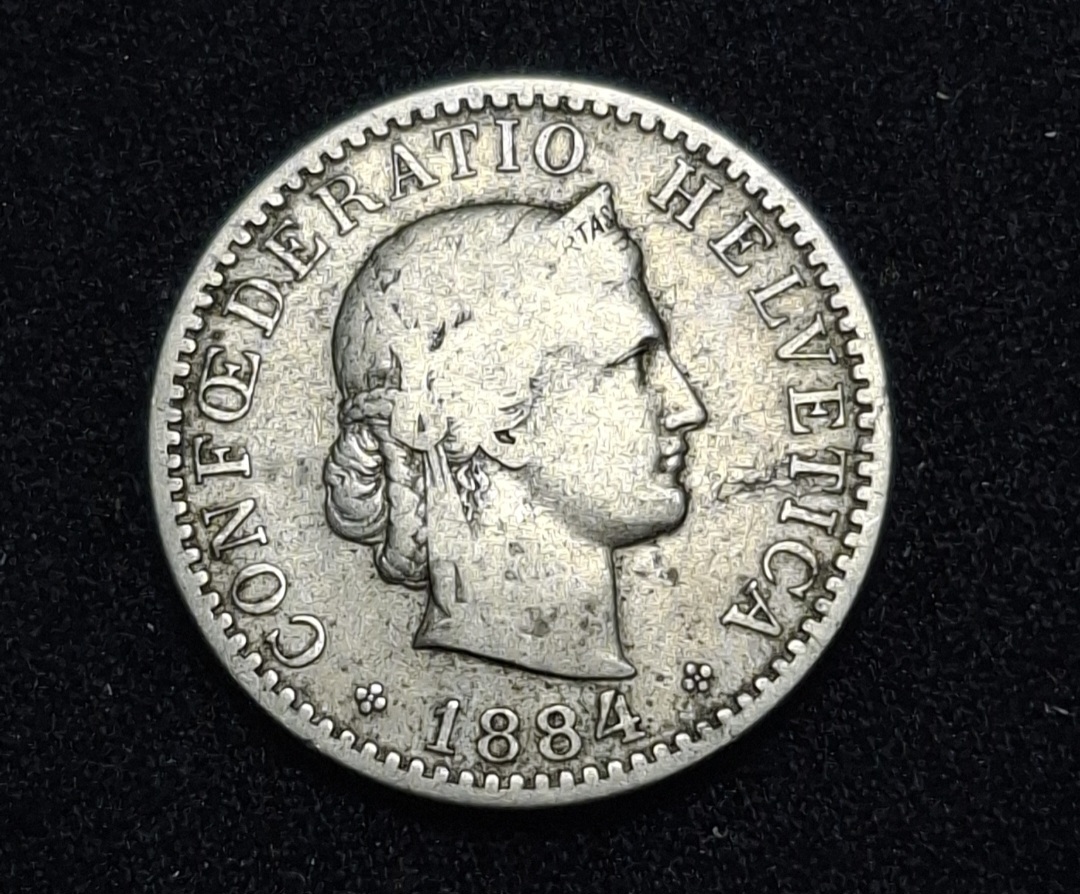 Suiza – 1884 – 20 Rappen – Níquel – VF