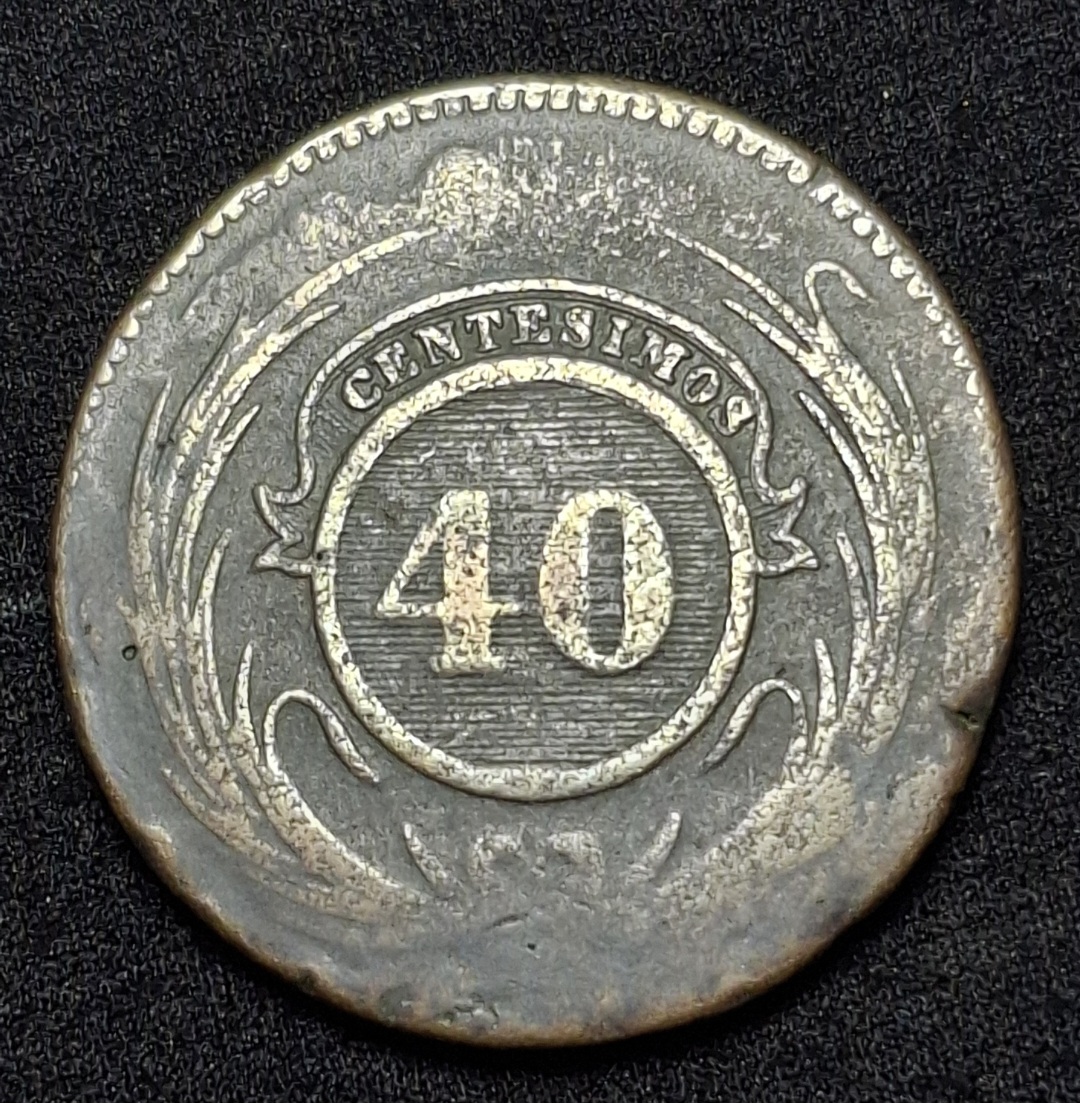Uruguay – 1844 – 40 Centésimos – **COBRE CLÁSICO** – Cobre, 40.5g, ø 40mm KM# 3 – CG##6.9.A