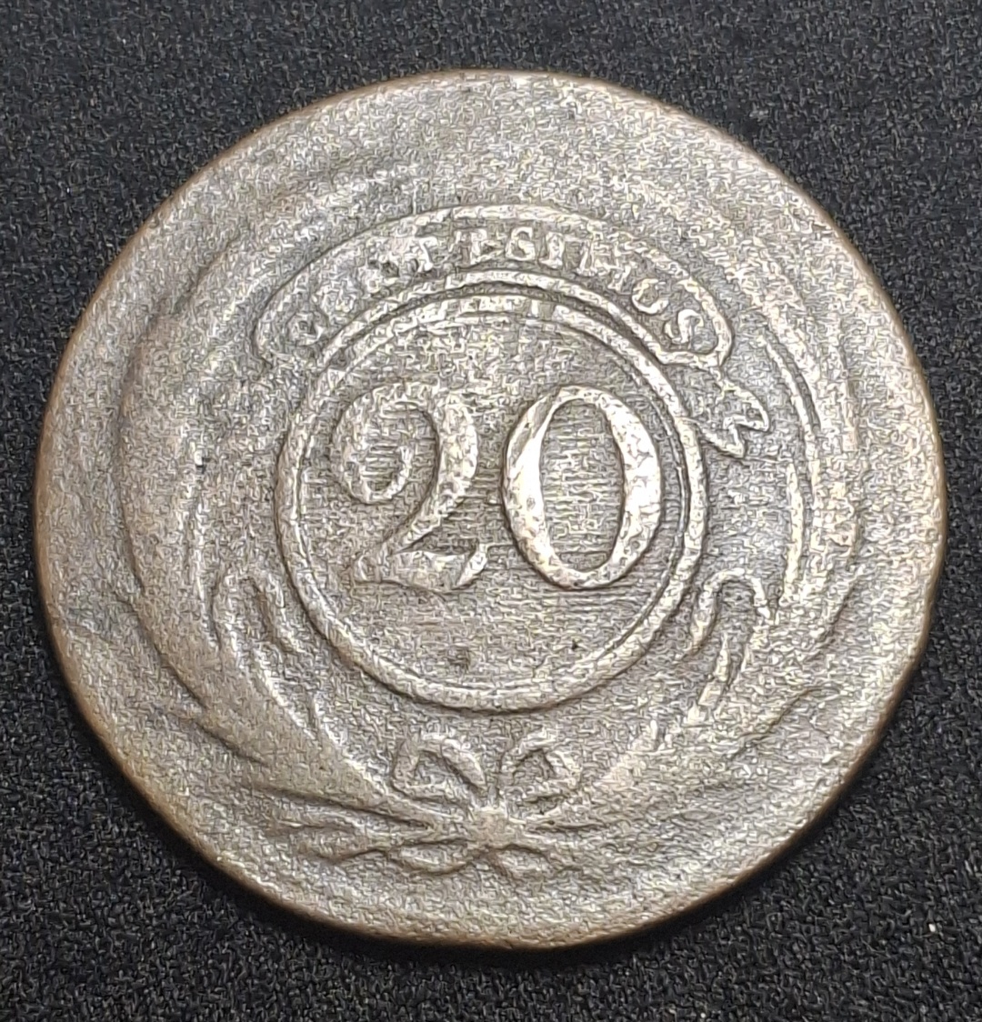 Uruguay – 1855 – 20 Centésimos – 11.2.A – Cobre Clásico – F/VF