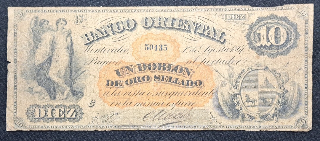 Uruguay – 1867 – 10 Pesos – Banco Oriental – F