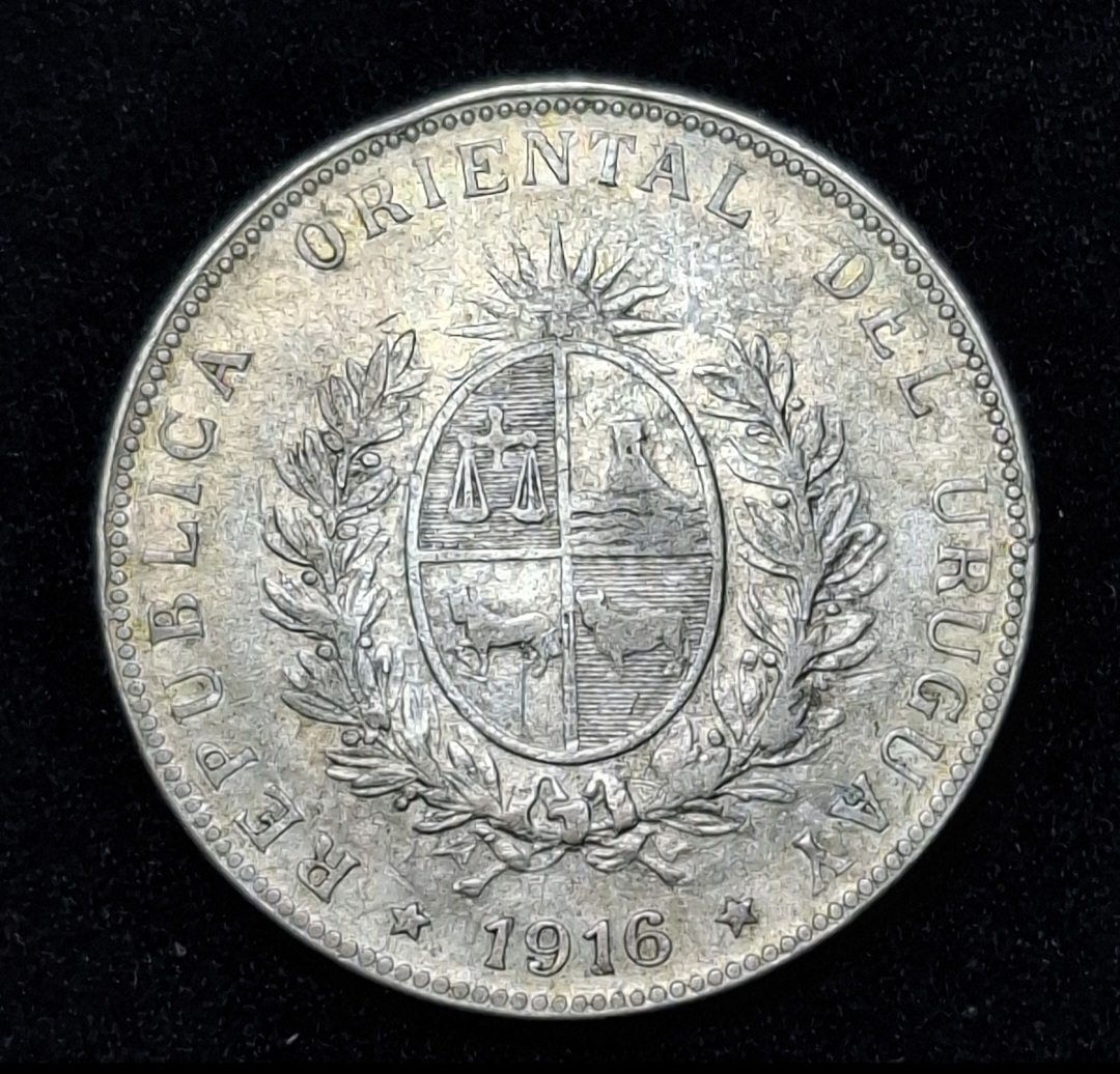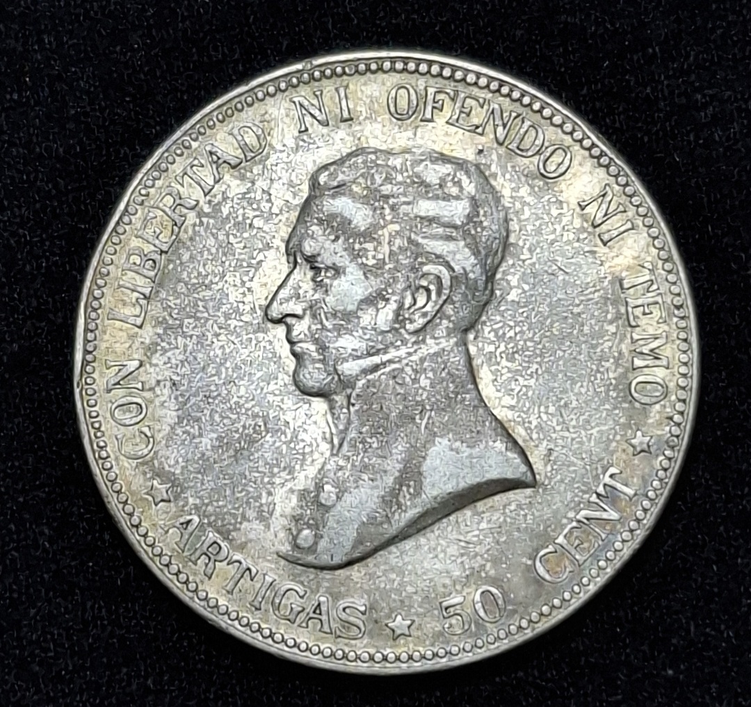 Uruguay – 1916 – 50 Centésimos – Plata 0.900, 12.5g, ø 30mm KM# 22 – CG##39
