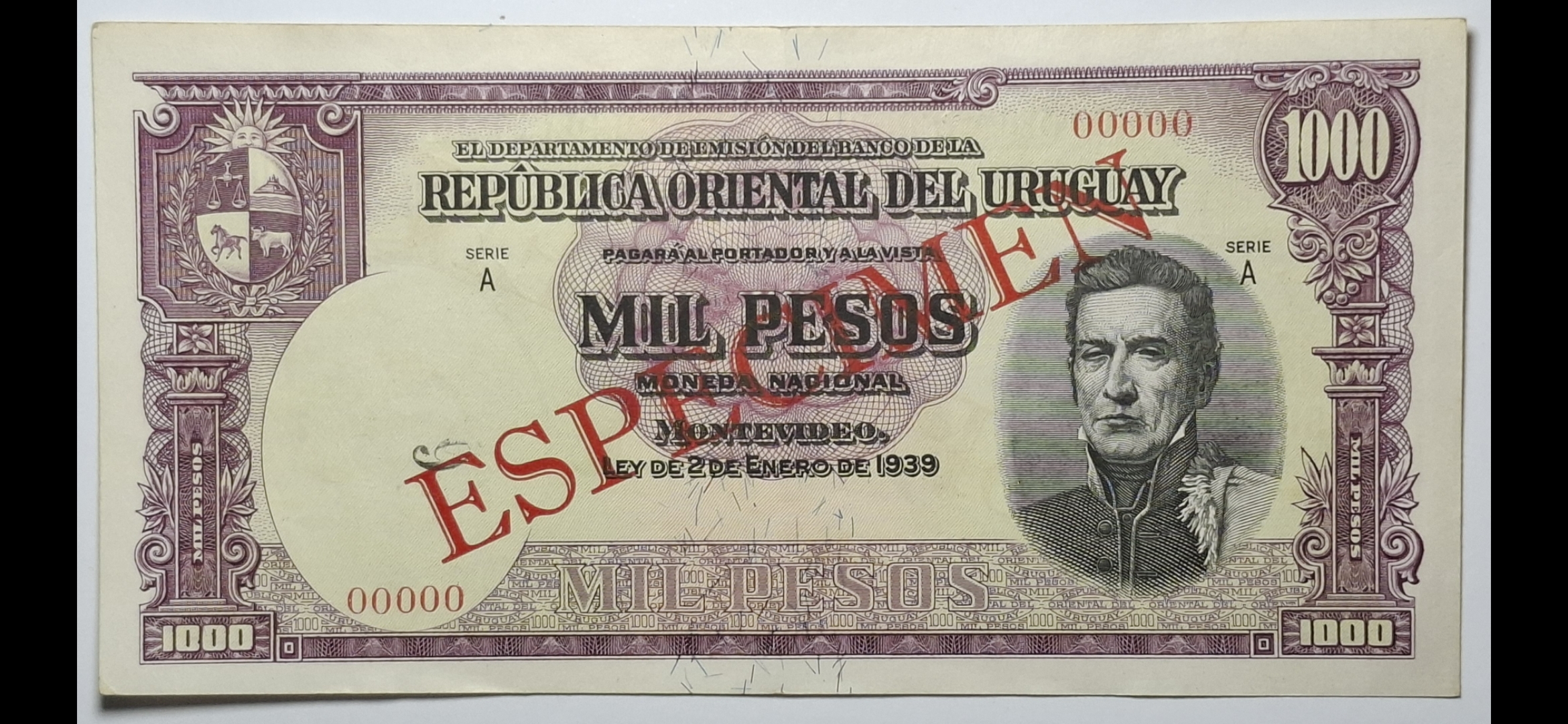 Uruguay - 1939 - 1.000 Pesos - Serie A - ESPÉCIMEN - Extremadamente RARO - cantidad