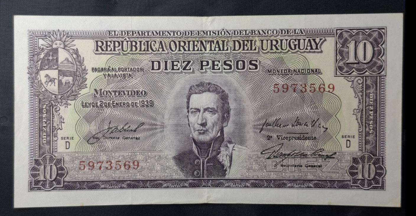 / Uruguay – 1939 – 10 Pesos – C.R.#10.V.24 – Raro – VF