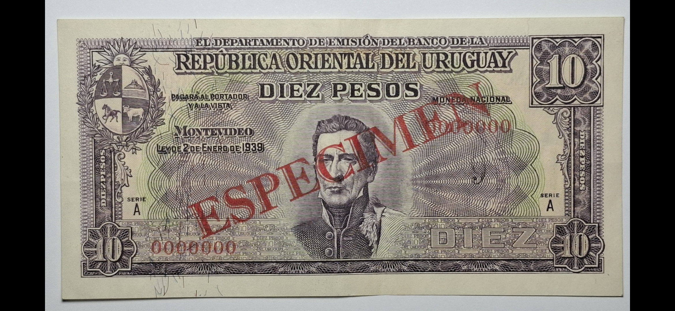 Uruguay - 1939 - 10 Pesos - Serie A - ESPÉCIMEN - Extremadamente RARO - cantidad