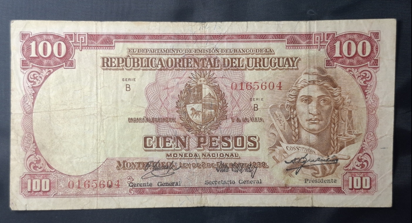 / Uruguay – 1939 – 100 Pesos – C.R.# 10.VII.5 – Serie B – F+