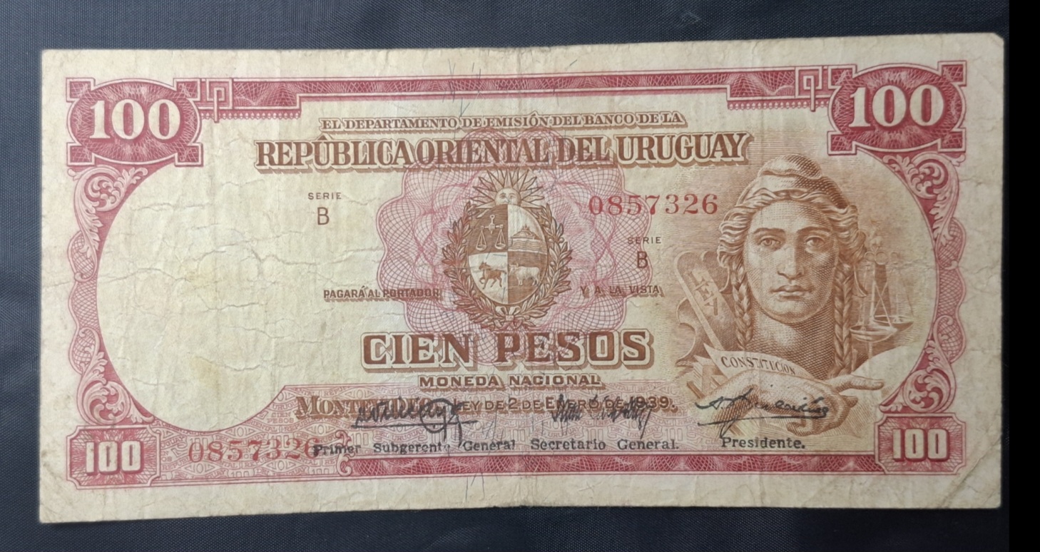 / Uruguay – 1939 – 100 Pesos – C.R.# 10.VII.8 – Serie B – F+