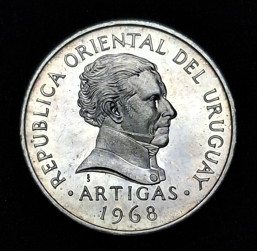 Uruguay – 1968 – 10 Pesos – ENSAYO – Plata, ø 23mm KM# Pn83 – CG## E19