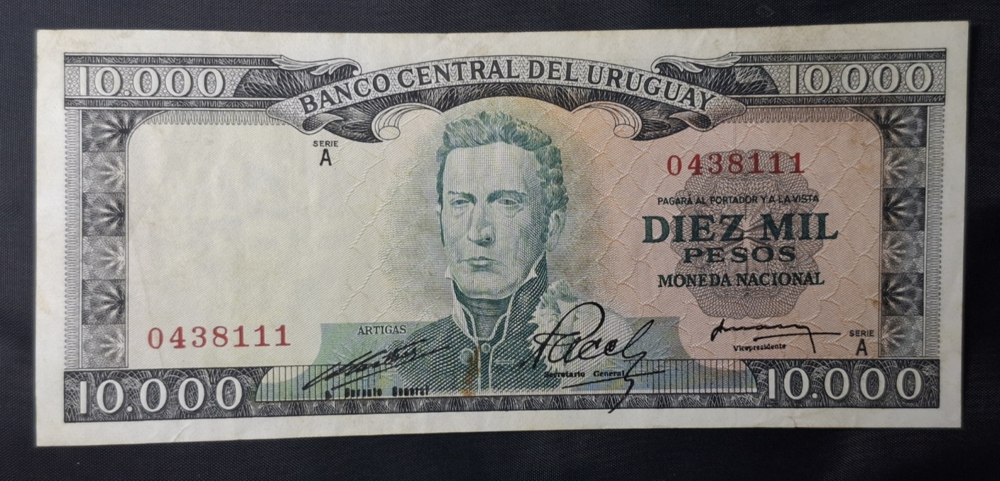 / Uruguay – 1968 – 10000 Pesos – C.R.# 11.A.1 – No común – Con manchas – VF