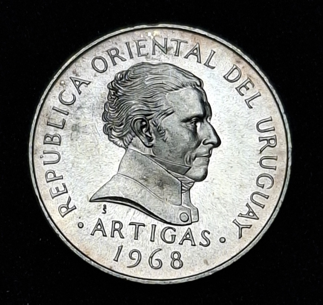 Uruguay – 1968 – 5 Pesos – ENSAYO – Plata, 4.5g, ø 20mm KM# Pn81 – CG## E18