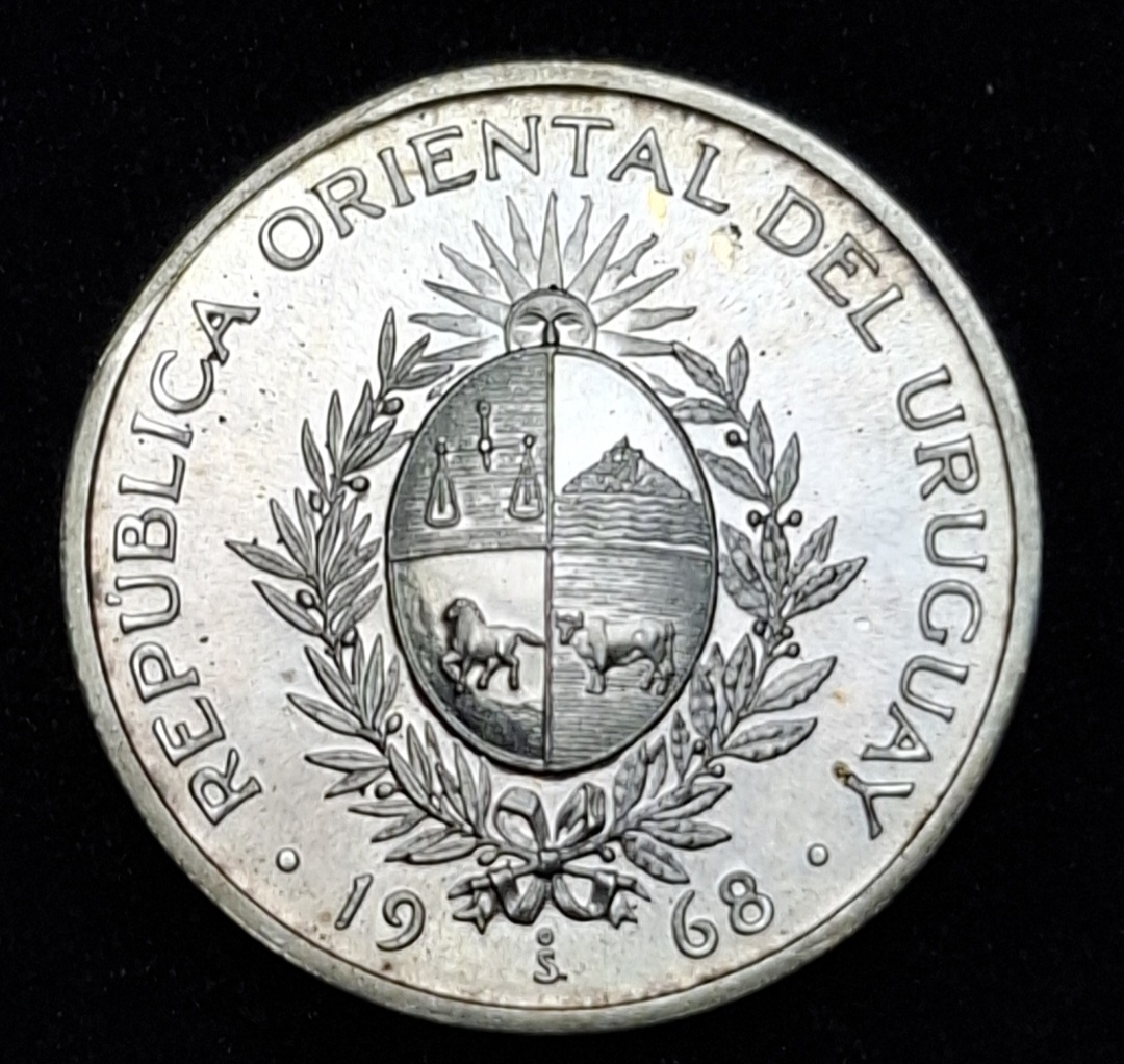Uruguay – 1968 – 50 Pesos – ENSAYO * – Plata, ø 24.5mm KM# Pn85 – CG## E27