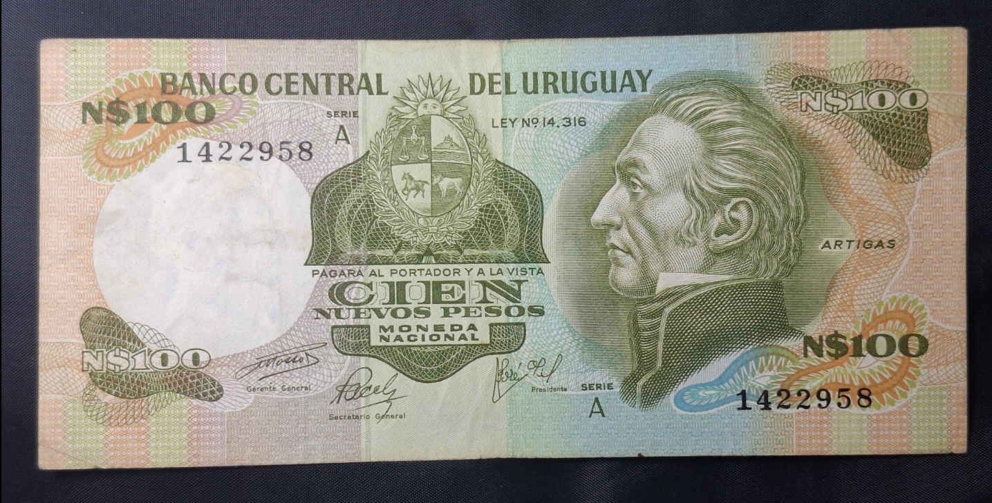 / Uruguay – 1975 – 100 Nuevos Pesos – C.R.# 22A – Serie A – VF