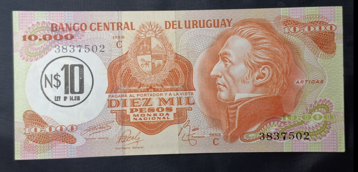 / Uruguay – 1975 – N$ 10/10000 Pesos – C.R.# 12C – AU