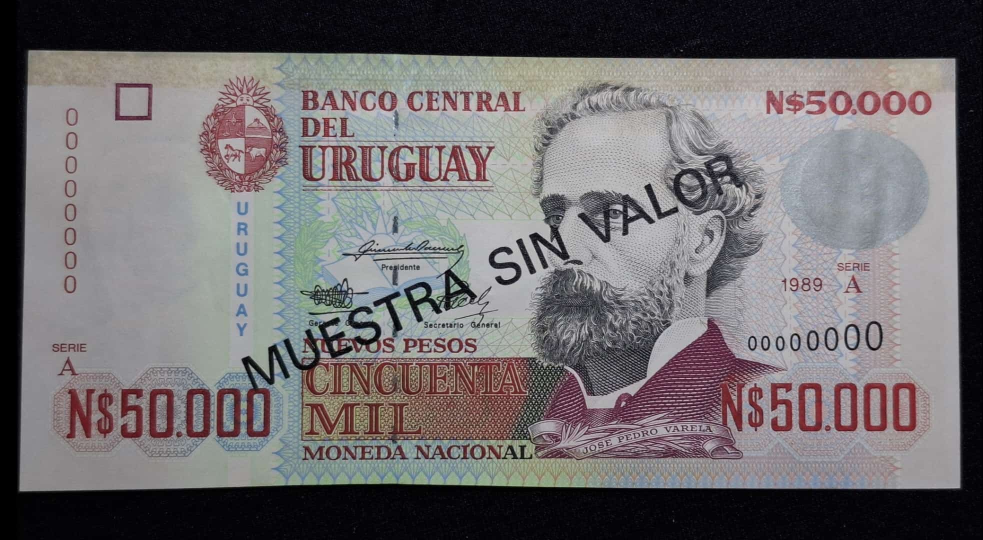 Uruguay – 1989 – Banco Central – ESPECIMEN / MUESTRA SIN VALOR – 50.000 Nuevos Pesos – RARO