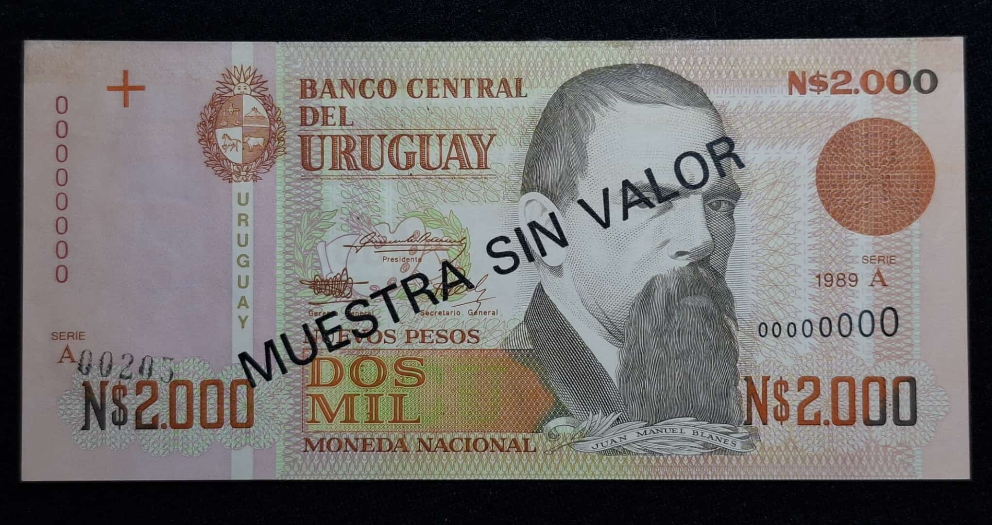 / Uruguay – 1989 – Nuevos Pesos 2.000 – Especimen / Muestra sin valor – Muy escaso –